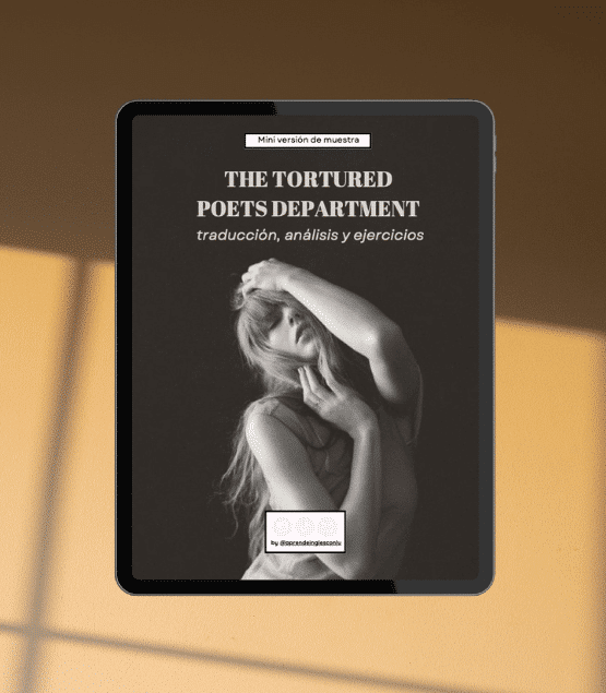 Descubre cómo The Tortured Poets Department puede transformar tu nivel de inglés mientras te diviertes. En el workbook completo encontrarás este maravilloso disco de Taylor Swift traducido por mí, junto con vocabulario clave, análisis en profundidad de cada canción, y ejercicios prácticos.